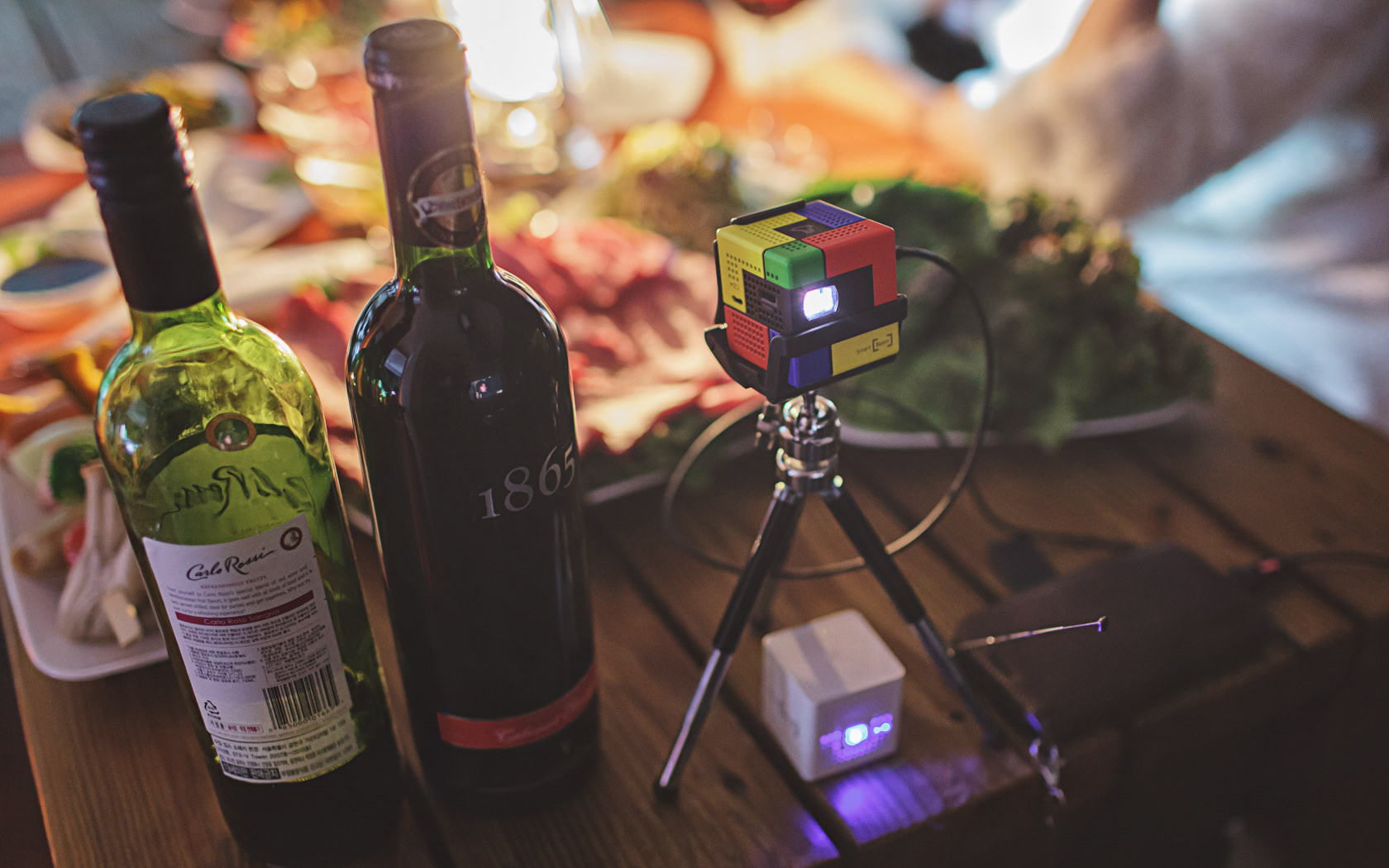 바비큐장, 다락방, 야외스크린에서 최대 100인치까지 확대되는 스마트빔으로 스마트폰에 있는 영화나 TV를 볼수 있습니다.