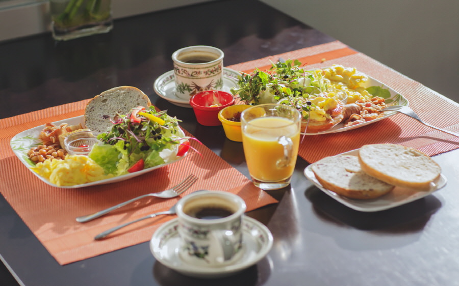 펜션에서의 여유로운 브런치가 당신을 행복하게 합니다.